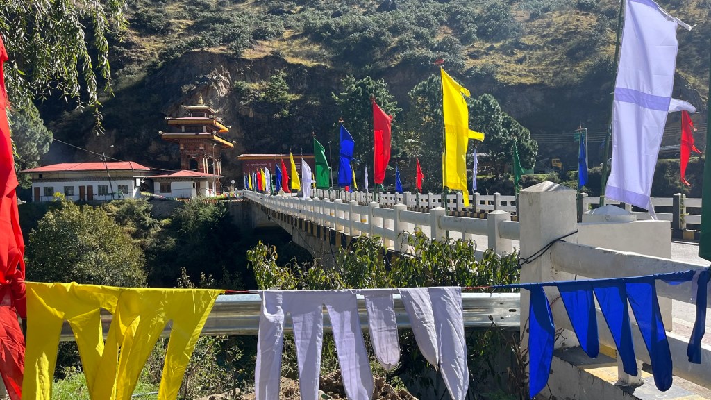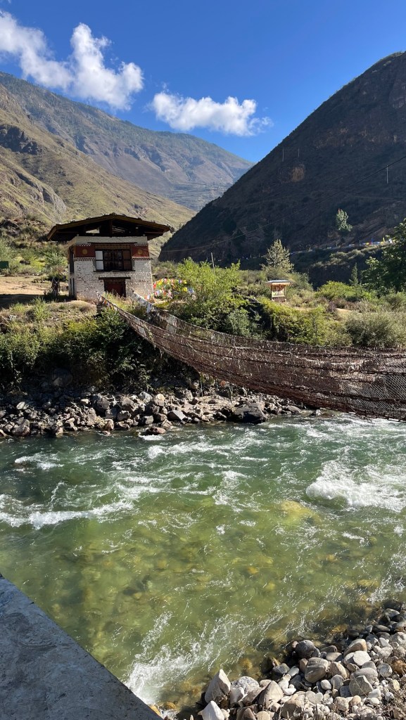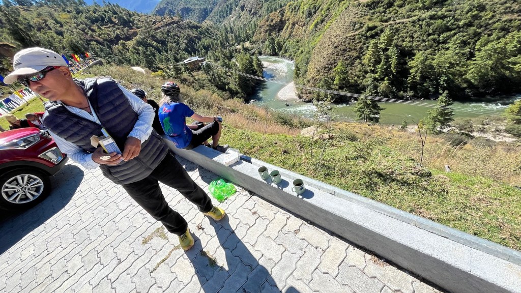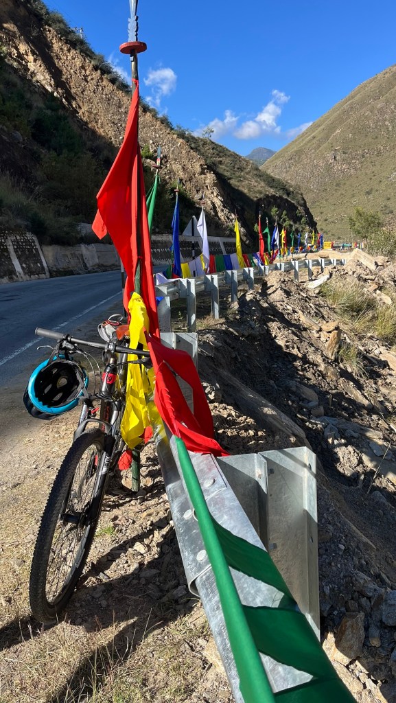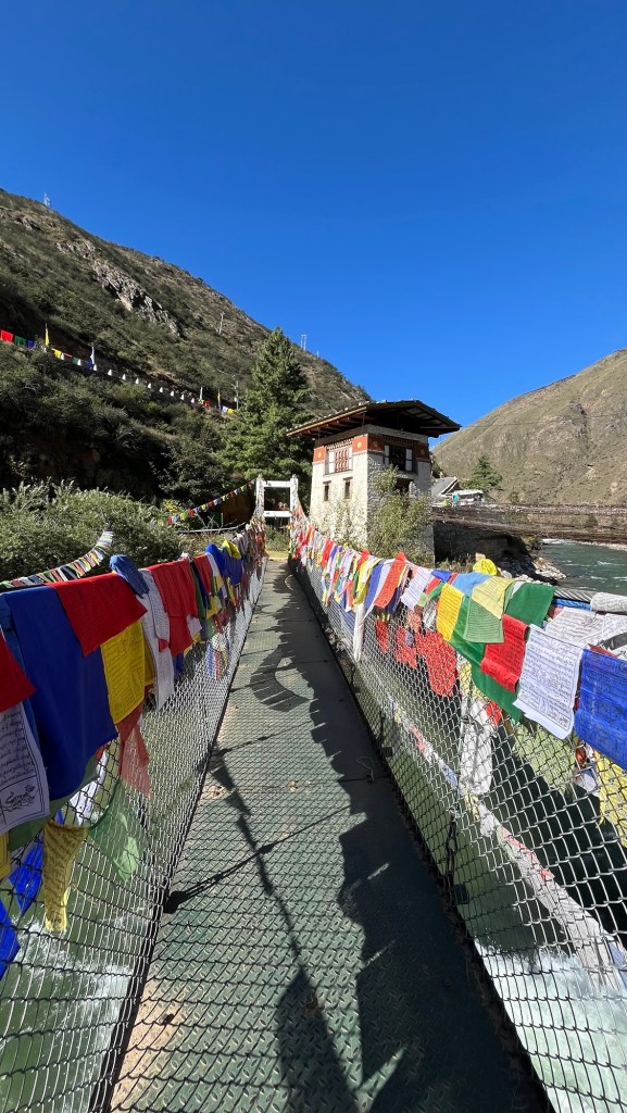 Spectacular ride today along the Paro and Thimphu rivers. As part of the Global Peace Prayer Festival 2025, the route from the country’s only international airport in Paro to the capital Thimphu was lined with prayer flags. If I were riding alone I never would have gotten to Thimphu with all the photo ops!