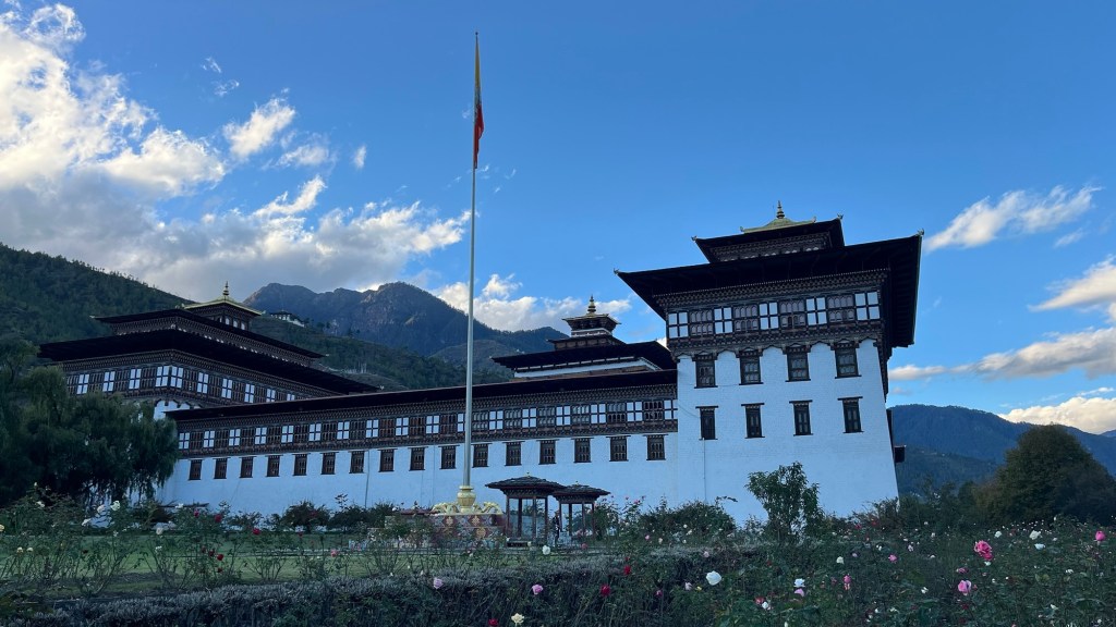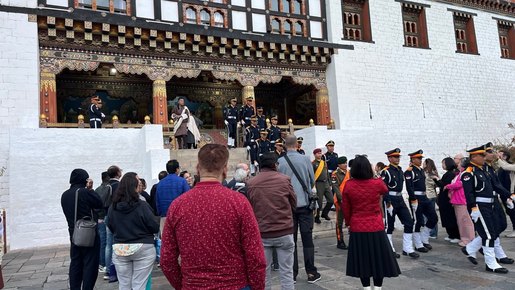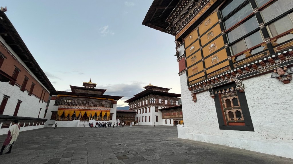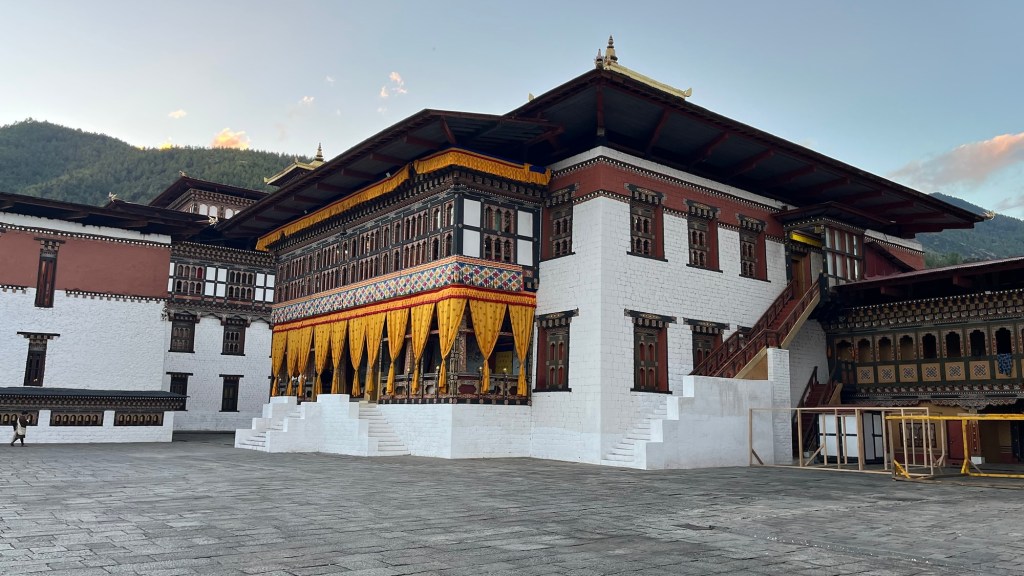 Had a little afternoon break to change some money and peruse the craft stands followed by a sunset visit to Tashichho Dzong: fortress, monastery, royal residence and seat of Bhutan’s government