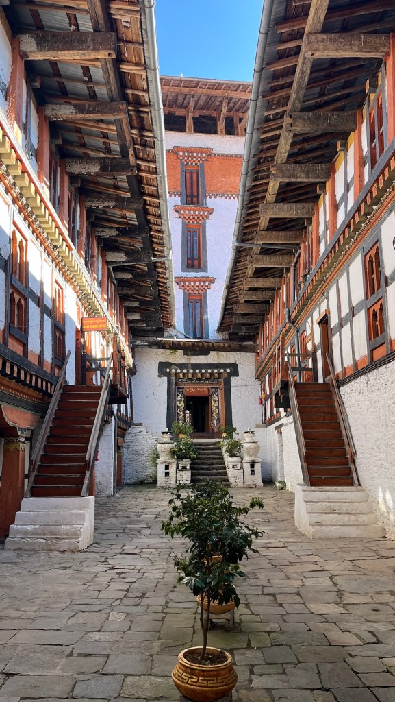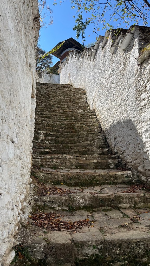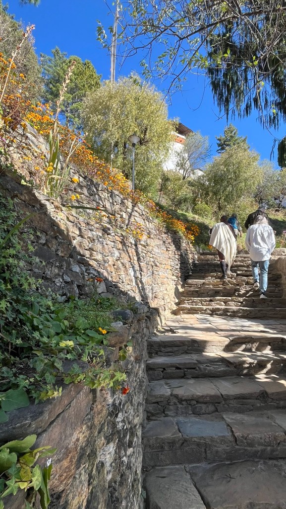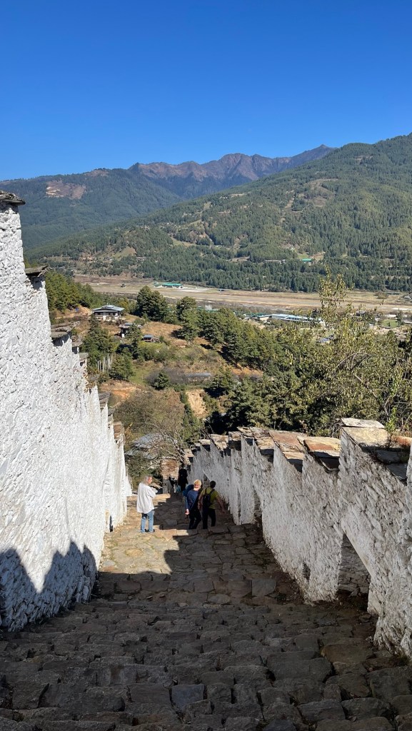 Our big bags and bikes left yesterday and this morning respectively, on the bus and the truck respectively. This left us walking to Jakar Dzong this morning. Still huffing and puffing on uphills.
