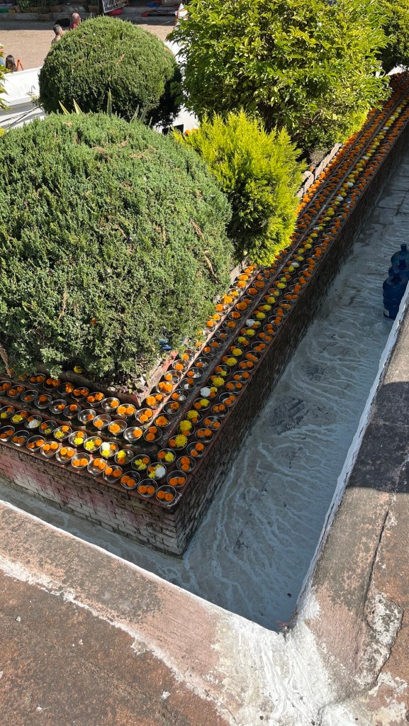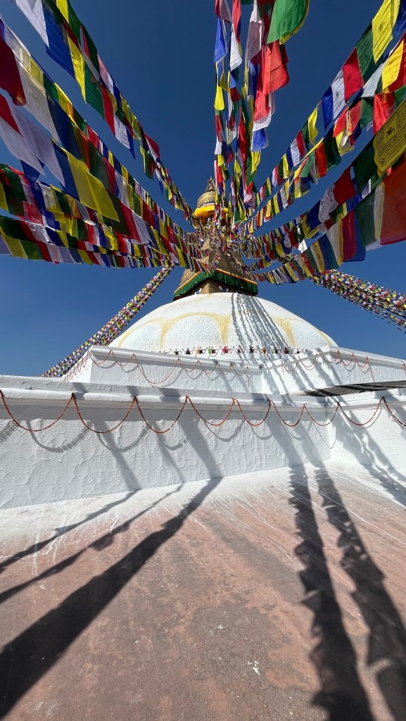 …and then got to go to Bodnath Stupa. Dazzling flags and flowers and blinding white light!