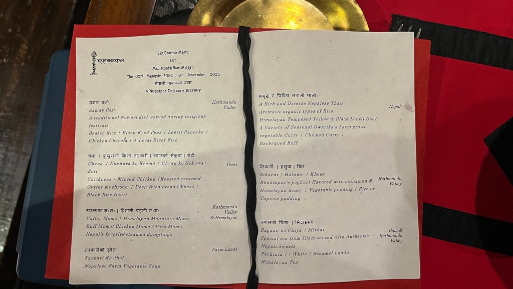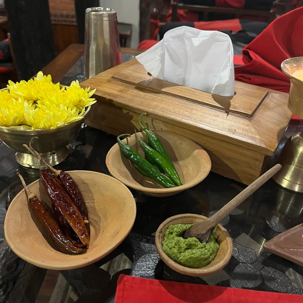As a treat, and because I had time to kill I had a 6 course Newari specialty meal before heading to the airport to Singapore.