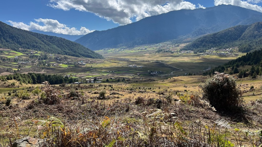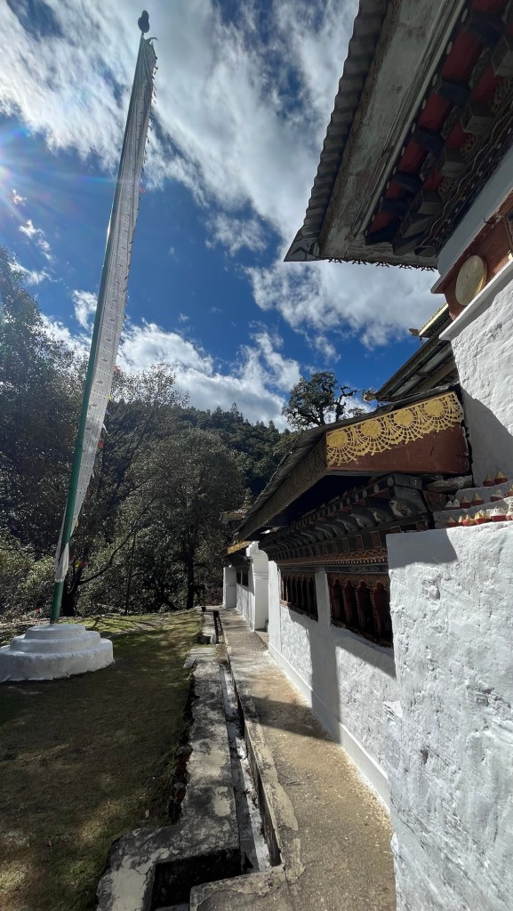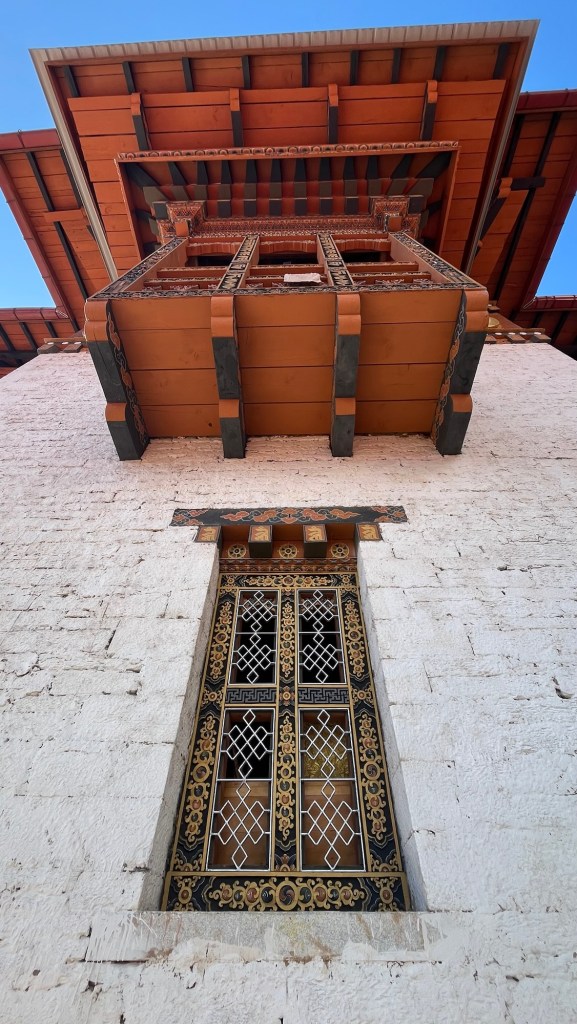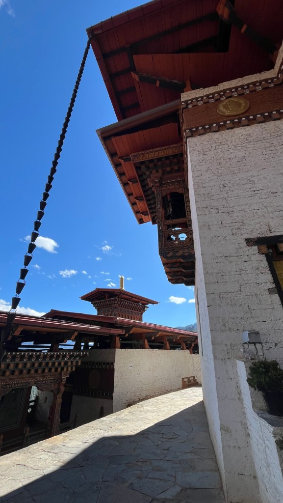 Gangtey Monastery proper is within a courtyard similar to a Dzong design but having built in more peaceful times, was not used as such. The courtyard is the site of the annual Black Neck Crane festival which we’ll be attending tomorrow. Today some adorable kids were rehearsing – this little girl was a star!
