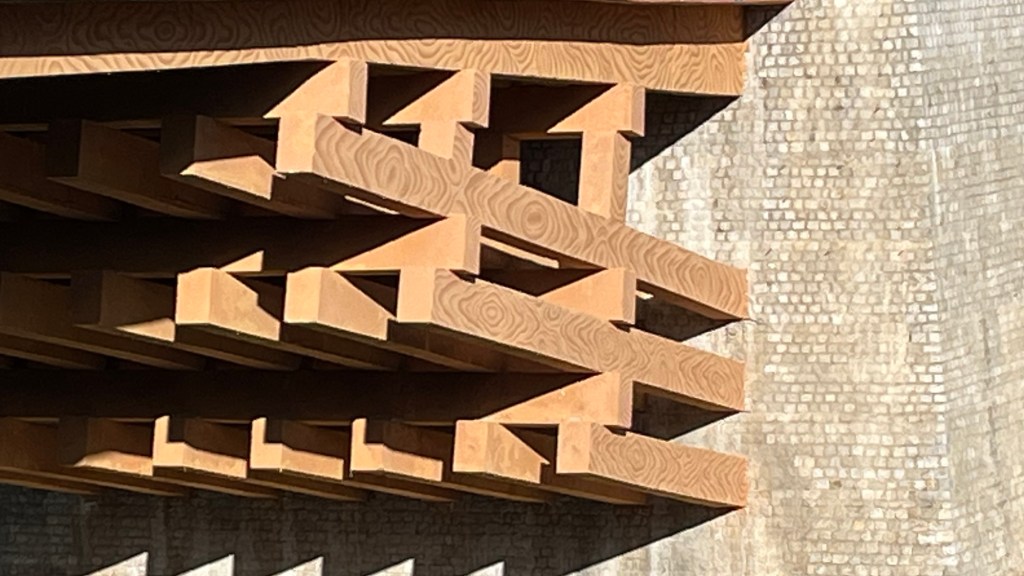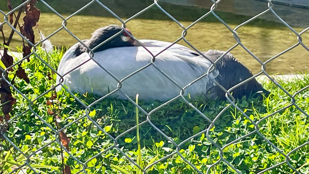 Leg 3 was a bit of rocky road and up slightly to the Black Neck Crane Sanctuary. We saw a film, conservation and sustainability exhibits and, two rescue cranes who are permanent residents. The cranes winter in the valley here arriving in late October after the potato harvest. On the second floor high power scopes are available to spy on the fields below. I can confirm that the white dots were cranes and not sheep.